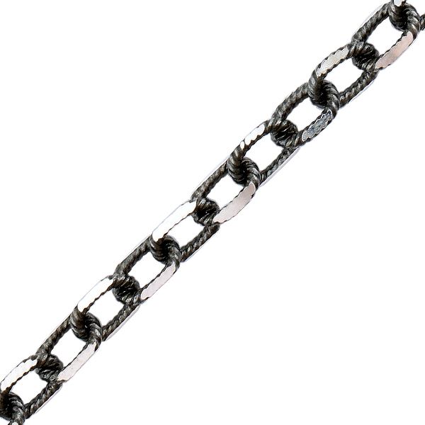 Sterling Silver Diamond Cut Oxidized Cable Chain ,6.4mm, 22" Length