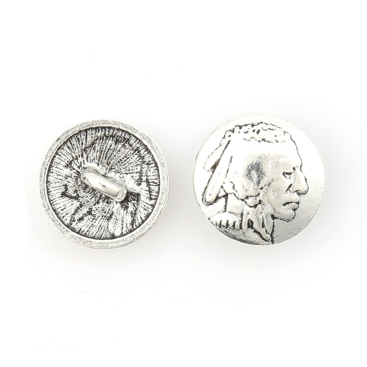 Base Metal, Indian Head 18mm Concho Button, 10 Buttons