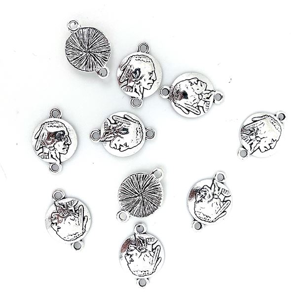 Silver Plated Indian Head Concho Link, 15mm, 10-pieces per Pkg