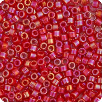 Miyuki Delica Size 11 Seed Beads, Red Opaque Aurora Borealis