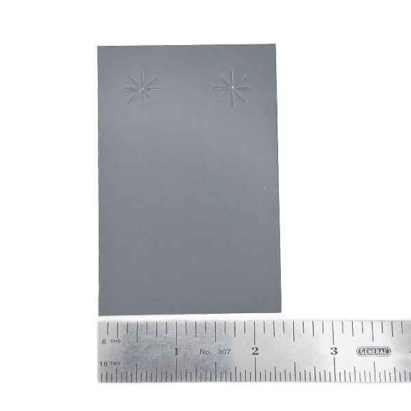Cut from heavy grey card stock, these earring cards are plain no print great for mounting different types of earrings. 2 3/8" x 3 1/2", top hole