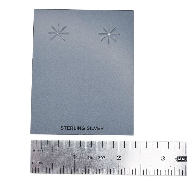 Cut from heavy grey card stock, these earring cards are printed sterling silver great for mounting different types of earrings. 2 3/8" x 3", star cut.