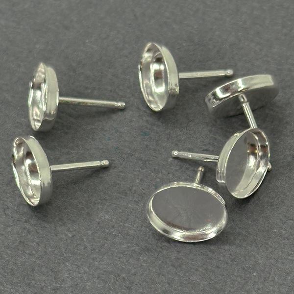 Sterling Silver 7x9mm Plain Bezel Cup Ear Post .036" x 3/8", Sold Per Pair
