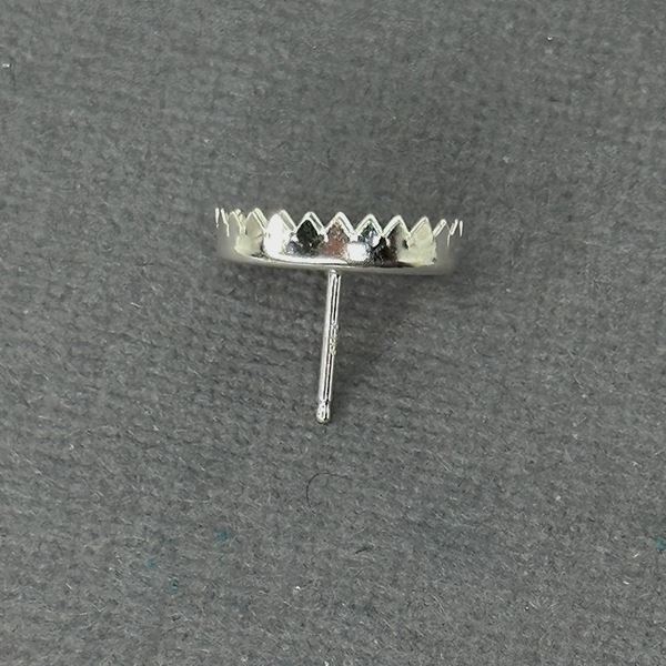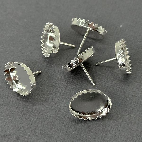 Sterling Silver 13x18mm Serrated Bezel Cup Ear Post .036" x 3/8", Sold Per Pair