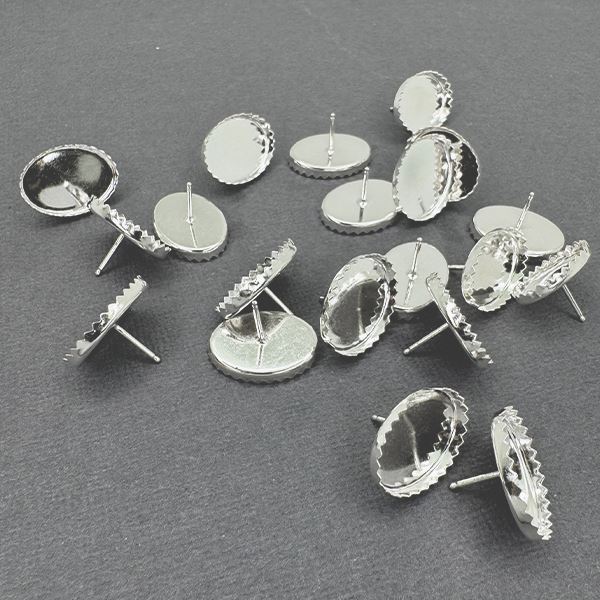Sterling Silver 13x18mm Serrated Bezel Cup Ear Post .036" x 3/8", Sold Per Pair