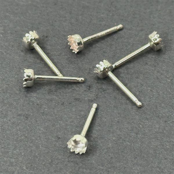 Sterling Silver 4mm Serrated Bezel Cup Ear Post .036" x 3/8", Sold Per Pair