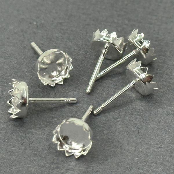 Sterling Silver 6mm Serrated Bezel Cup Ear Post .036" x 3/8", Sold Per Pair