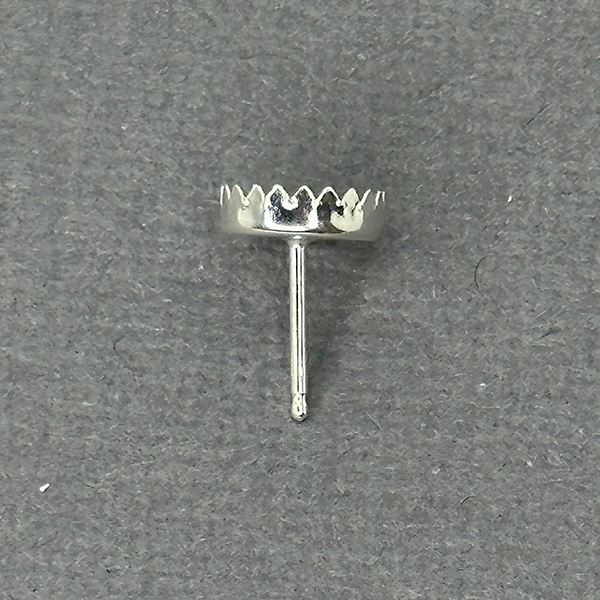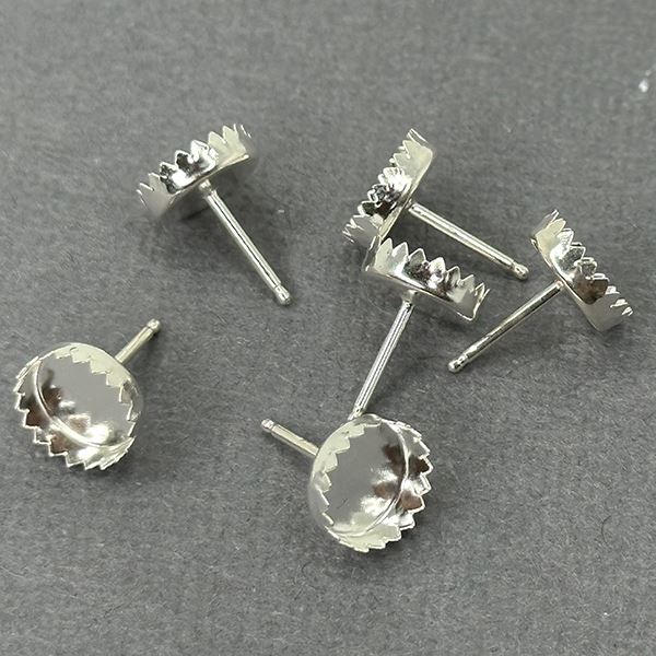 Sterling Silver 8mm Serrated Bezel Cup Ear Post .036" x 3/8", Sold Per Pair
