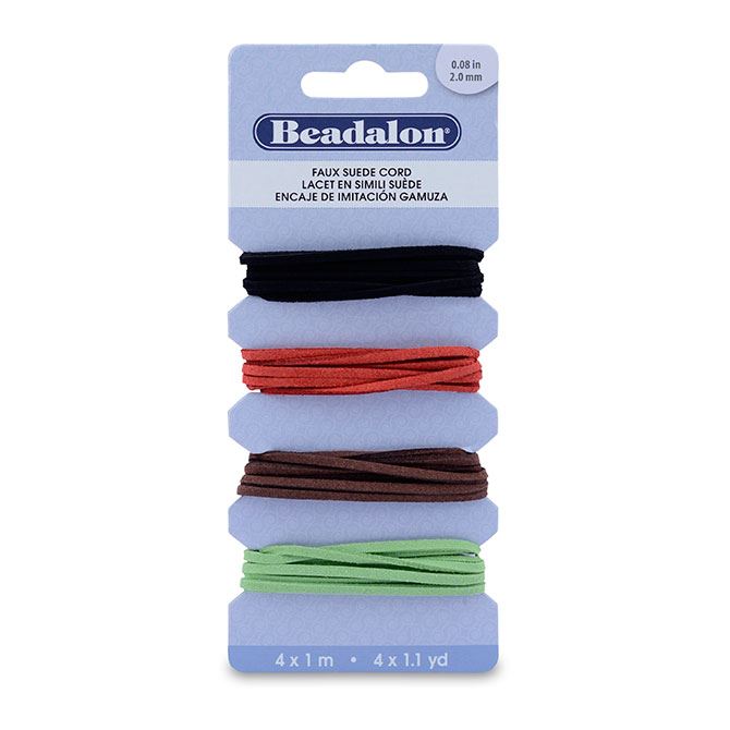 Cord Variety Pack, Faux Suede, 2mm, Black, Red, Brown, Green