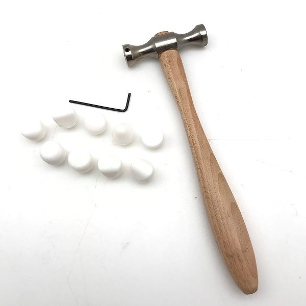 This is a little hammer (smaller than I expected). The faces measure 3/4" 18mm in diameter. Metal part of head is 2 3/4" 72mm long. Hammer with two faces attached weighs 137g (a bit less than 5 oz). Hard nylon or polypropylene faces are secured by a tiny setscrew that clamps the stem. Allen key for setscrew included ( Fortunately the faces and head are made accurately so the faces sit flat on the head and it does not appear that they will wobble loose with use. Handle 7 3/4" 200mm long. Very nicely made and finished.