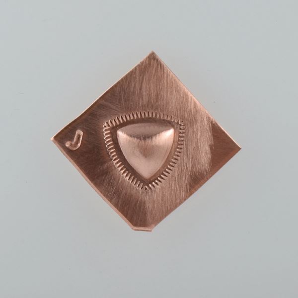 This stamp is made from hardened and tempered tool steel. These are fabricated/handmade, each may have a slight difference.