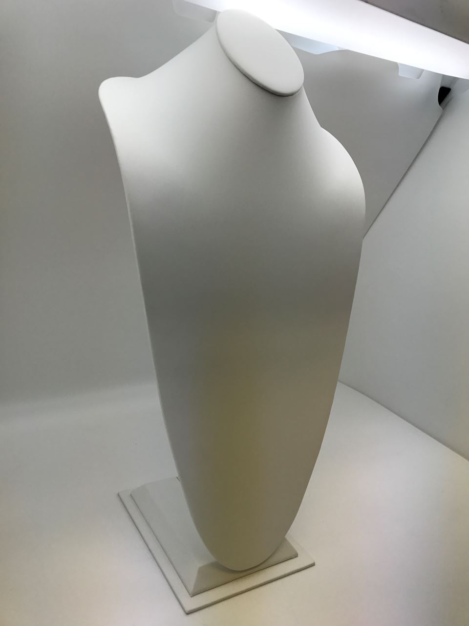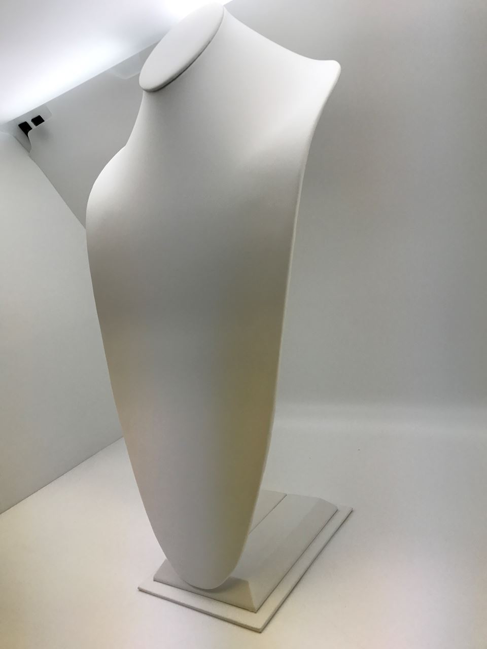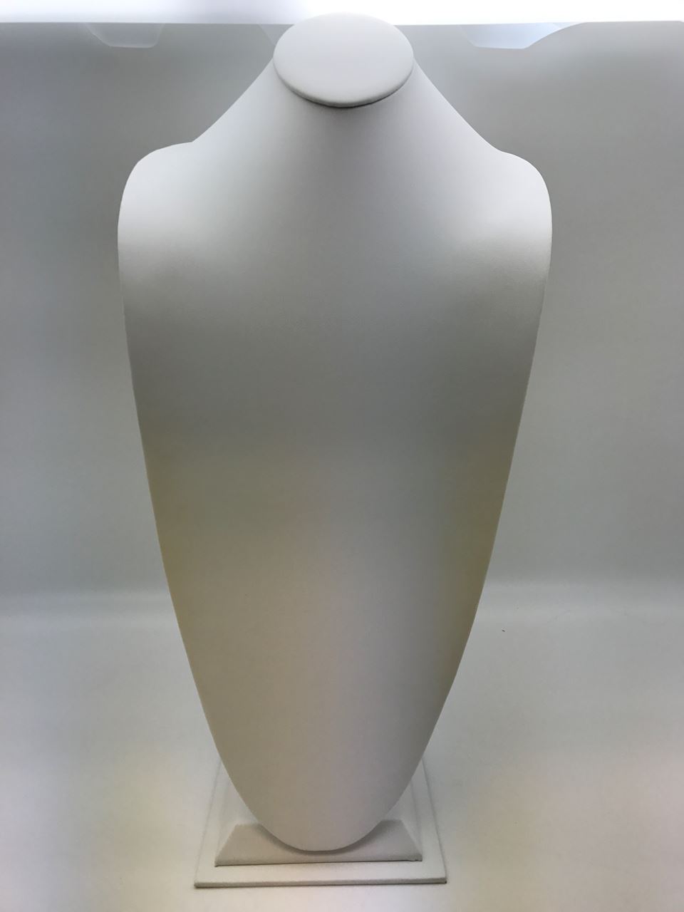 White Faux Leather Silhouette Style Necklace Display, 11" L x 8-7/8" W x 22" H, Sold individually, Imported