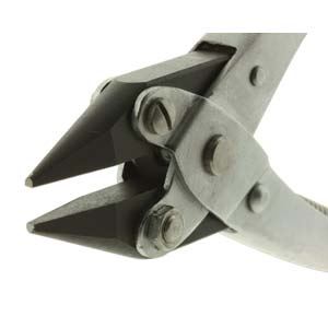 Parallel pliers are used when uniform pressure is required. They feature a unique compound box joint that enables the jaws to stay parallel to each other. Even under firm pressure, they provide a flat, consistent grip, unlike standard pliers that apply angled, uneven pressure that can cause items to slip out of the jaws. These pliers are ideal for securely grasping difficult-to-hold items such as round beads or holding one end of an object, wire, or metal sheet while working the other end.