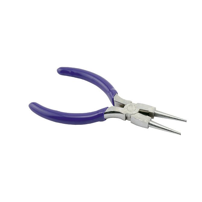 Round Nose pliers with a cutter, create loops, bends and use for making jump rings. Carbon Steel Lap Joint pliers with purple dipped handles for confort. Economy grade pliers perfect for Artistic Wire Projects. 5-1/4"