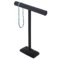High quality, velvet-covered, wood display has a beveled-edge base, and is great for bracelets and necklaces. Bar has a diameter of 1-1/2".