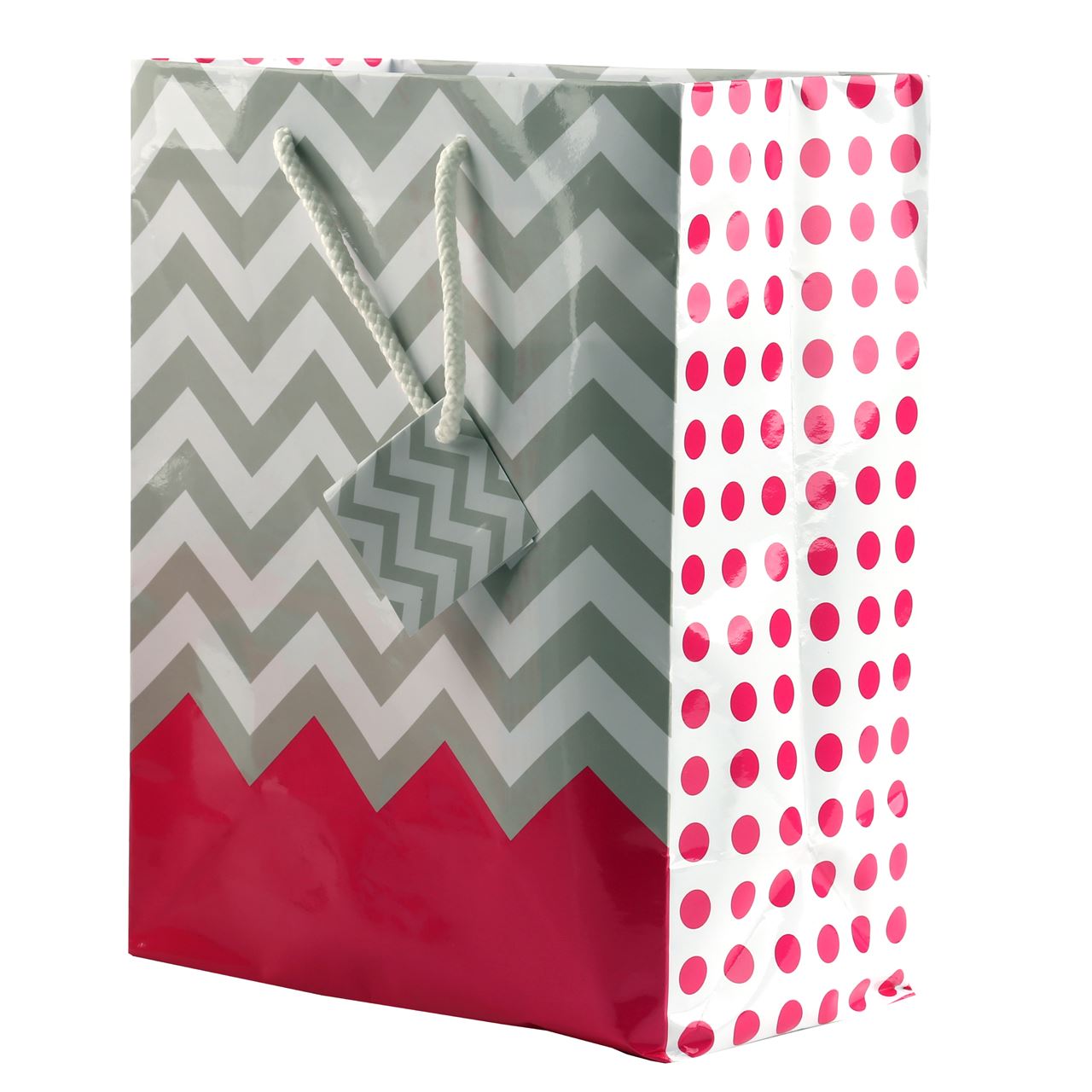 Paper Tote, Polka Dot/Chevron Pink, 8" x 5" x 10" H