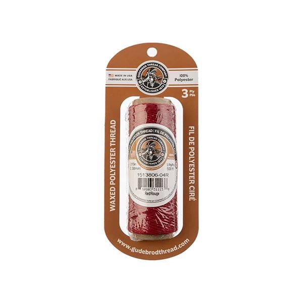 Thread is made of fiber and polyester. It holds a round shape, the sizing is 0.38 millimeters.
