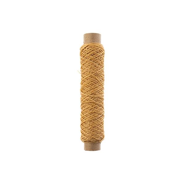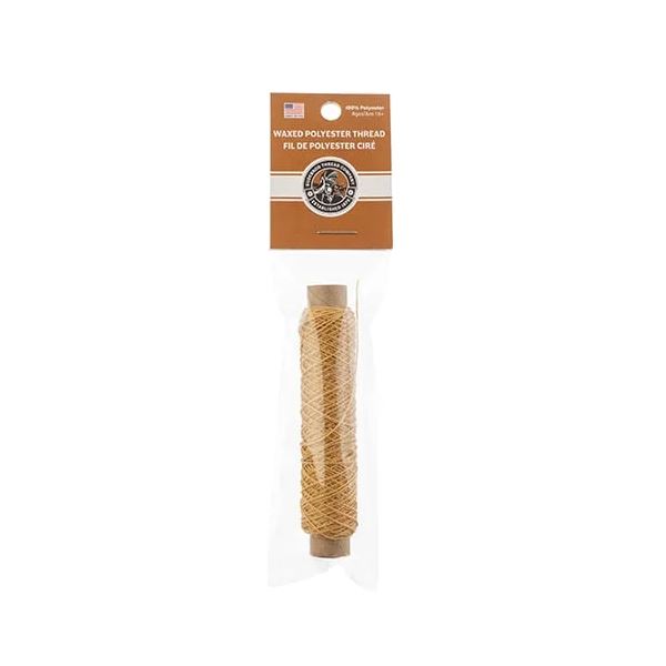 Thread is made of fiber and polyester. It holds a round shape, the sizing is 0.38 millimeters.